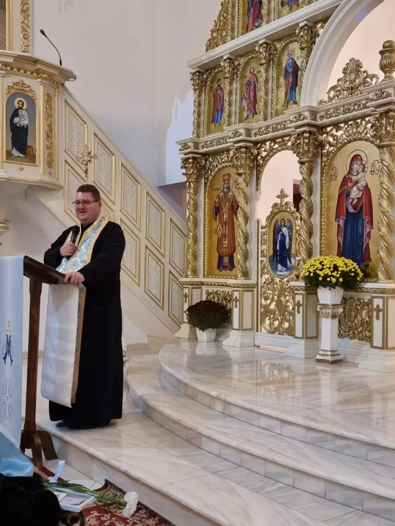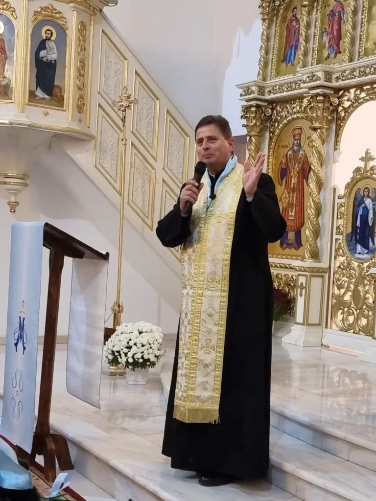 În tonul unei atmosfere calde și plăcute, într-o biserică frumos împodobită, pregătită pentru această sărbătoare, parintele paroh Nicolae Huzău, împlinind oficiile de gazdă, a primit cu drag salutând prezența părintelui protopop Eduard Fischer, a președintei Reuniunii Mariane la nivelul Eparhiei de Maramureș, doamna prof. Mirela Coman, a coordonatoarei din Protopopiatul Satu Mare, doamna Iuliana Vida, a preoților și marianiștilor din parohiile aparținătoare, care au fost părezenți.